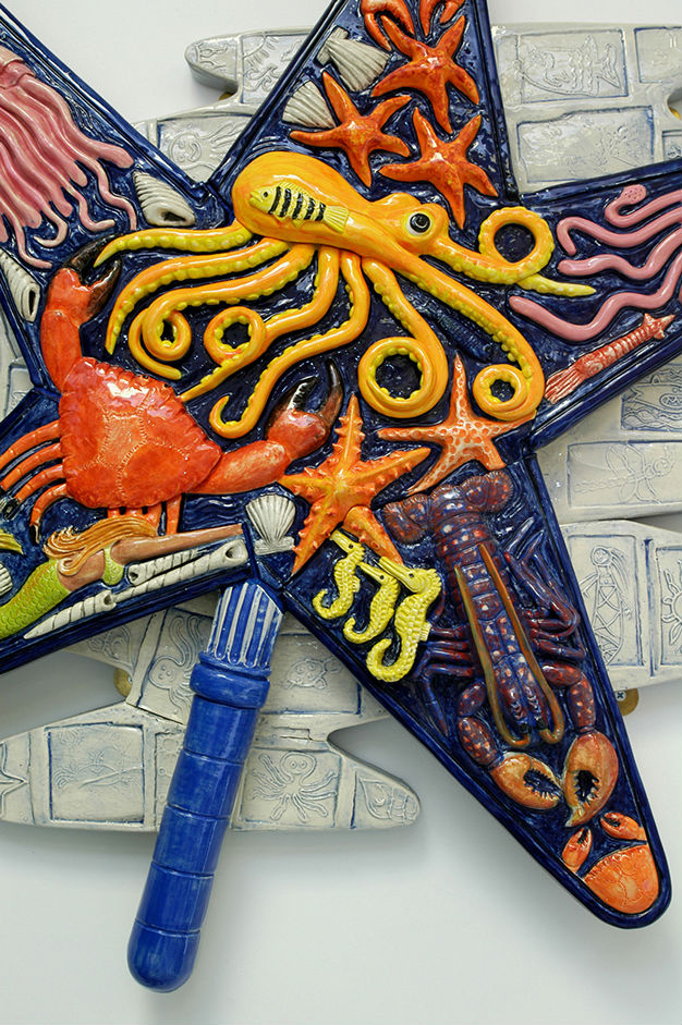 Other public commissions include working with Look Ahead in Tower Hill on public signage for the project One Mile East; creating two high-relief ceramic panels for the Children’s Ward of the New Royal Gloucester Hospital; producing ceramic relief wall panels for the interior of a lift as part of the refurbishment of Brighton and Hove Museum.