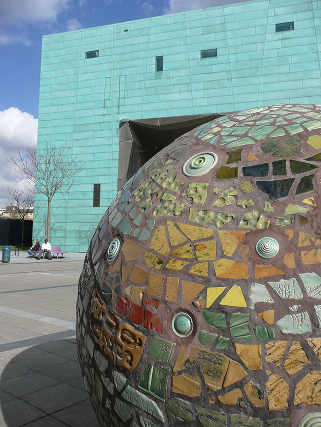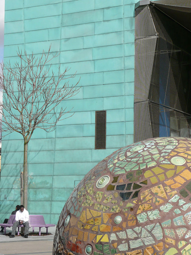 2m diameter) in steel, concrete and ceramic mosaic, located outside the award winning Alsop/Stormer